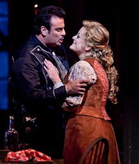Как обычно, пение Войт вызвало множество споров в оперном мире. Присоединяясь к обсуждению, должен сказать, что мне приходила в голову мысль о сопрано, звучащем много лучше в этой взыскательной роли, требующей отличного легато, широкого диапазона и выносливости. Более десяти лет назад, еще до операции по снижению веса, голос Деборы Войт обладал более богатым, страстным, красивым звучанием. Впрочем, в роли Минни ей удалось смягчить наиболее острые углы своего голоса и петь с лирической гибкостью, тем не менее, не забывая буквально пронзать оркестр в кульминационные моменты – к примеру, бесстрашно высоким «до» в первом действии. Но больше всего вас потрясает то, насколько глубоко Войт ощущает характер героини. Появляясь в первом действии, чтобы тремя выстрелами из ружья прекратить драку в собственном трактире, она выглядит совершенно в своей стихии. Влюбившись в бандита Дика Джонсона, которого она повстречала еще раньше и потом часто вспоминала, Минни раскрывается иначе: трогательно и горько девушка признается, что она, по сути, «никто», но пытающаяся делать хоть что-то хорошее – и все это под постепенное нарастание гармонично тусклого, с вкрадчивыми, мягкими нотками звучания оркестра, как нельзя более точно отражающего суть происходящего.