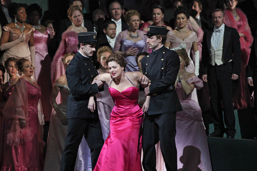 Возвращаясь к трансляции «Манон», сразу хочется отметить фантастическое звучание оркестра под управлением Фабио Луизи: вот искренне не понимаю, за что недолюбливают этого высокопрофессионального, корректного и грамотного дирижера. Музыканты под его управлением буквально вылепливают каждую фразу с элегантной академичностью, корректной округлостью и бережной проговоренностью пассажей, а межгрупповая слаженность оркестрантов просто изумила. Если же говорить о вокале, то более гармоничного ансамбля солистов и желать не хочется: исполнители главных партий идеально дополняли друг друга драматически и музыкально, а центральный дуэт Анны Нетребко и Петра Бечалы даже в залах кинотеатров воспринимался с невероятным энтузиазмом.