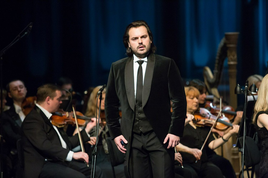 Стильность программы декларировал первый же номер – увертюра «Раймонд» Амбруаза Тома, раритет концертов оперного репертуара. Композитор посвятил значительную часть своего творчества воплощению в музыке шекспировских образов, что позволило изящно объединить в программе бриндизи Гамлета в исполнении Василия Ладюка с литературно родственными фрагментами оперы Гуно «Ромео и Джульетта» – каватины Ромео (Алексей Татаринцев) и вальса Джульетты (Анна Аглатова). В контексте концерта эти три номера, наверное, правильно оценивать как «распевочные», не отмечая некоторое количество недостатков исполнения. Пожалуй, следует отметить лишь два момента, сохранившихся в дальнейшем – неидеальное французское произношение Василия Ладюка и тенденцию Алексея Татаринцева брать верхние ноты с небольшого порожка – без откровенного подъезда, но как будто со страховкой. Шекспировскую тему продолжил мадригал «Ange adorable», в котором Алексей Татаринцев и Анна Аглатова сумели не только стилистически точно передать вокальные нюансы, но и достоверно показать характеры героев.