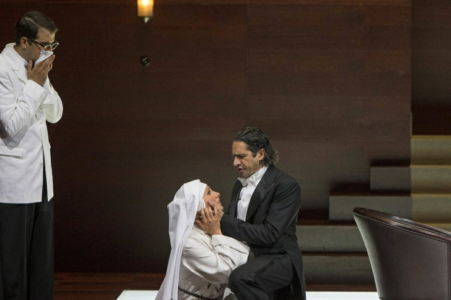 Что можно сказать про исполнителей главных партий? Я, к своему «несчастью», смог посмотреть два спектакля: один, который транслировался в прямом эфире, и второй, который шёл с тем же составом тремя днями позже. Я знал, насколько серьёзное влияние на качество исполнения оказывает трансляция, и был готов к тому, что следующий после трансляции спектакль пройдёт «на выдохе». Но те исполнительские шероховатости, которые нивелировались эмоциональным накалом драматической самоотдачи во время первого спектакля, превратились в катастрофу на втором.