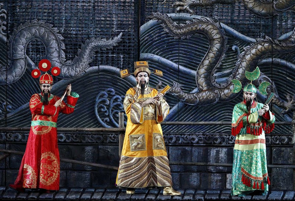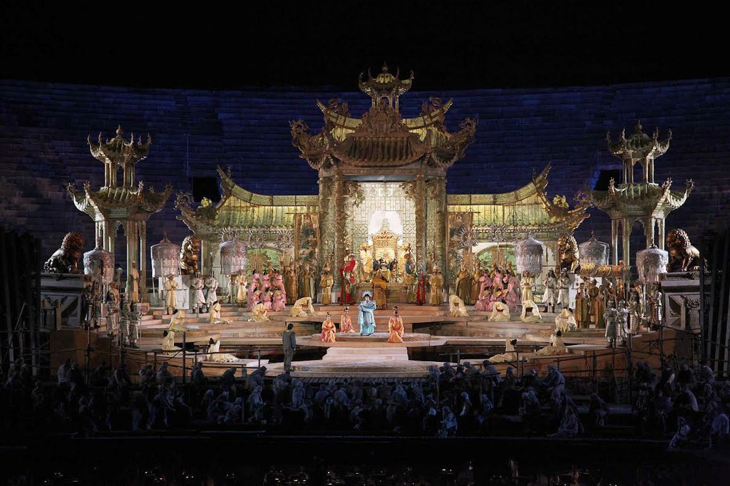 В «Турандот» публика особенно удивляется поразительному зрелищу во втором действии, когда ее глазам предстает сияющий золотом императорский дворец. «Турандот» золотая, сияющая, грандиозная – так когда-то написала автор этих строк об этом спектакле Дзеффирелли. Такова она и сегодня. В спектакле торжествуют принципы, которые престарелый художник всегда отстаивал и за которые сегодня все еще готов броситься в бой. Эти принципы характеризуют упомянутый стиль kolossal, в котором выдержаны все постановки Дзефиирелли на такой грандиозной площадке, как Арена ди Верона. В «Турандот» глаза зрителей не выдерживают ослепительного сияния, которое испускает императорский дворец. Что рядом с его блеском весь остальной мир? Только серость и ничтожность. Особого признания заслуживают костюмы Эми Вада, которая получила «Оскара» за работу над фильмом Акиры Куросавы «Ran». Боязнь пустоты, похоже, с возрастом у тосканского режиссера увеличилась: количество статистов и хористов, марширующих по сцене, превосходит всякое воображение. Шествия Мастер считает неотъемлемой частью «великой итальянской оперной традиции». В «Турандот» все предсказуемо, но справедливости ради надо признать, что подобная постановка и есть фирменный стиль Арены и вызывает восхищение у преимущественно туристической публики.
