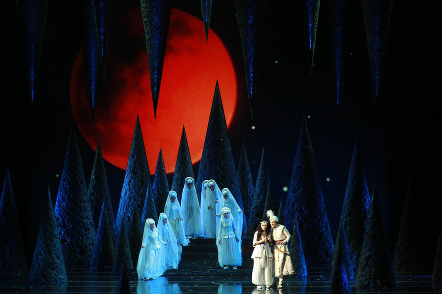 Оригинально решена сцена приношения сокровищ султану. Драгоценности – рубины, сапфиры и изумруды изображают дети в соответствующих костюмах. Своеобразная пародия на баланчинские «Драгоценности» в Большом театре.
